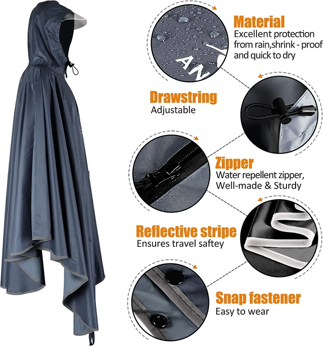- Draagbaar en compact – De poncho kan worden opgevouwen tot een compact formaat, met een bijpassende kleurzak van ongeveer 27 x 20 cm voor eenvoudig opbergen en meenemen in handtas, rugzak of koffer in geval van plotselinge regen. En hij weegt 920 g, het geschikte gewicht zorgt ervoor dat hij niet in de wind fladdert en uw zicht belemmert tijdens het fietsen op drukke wegen.