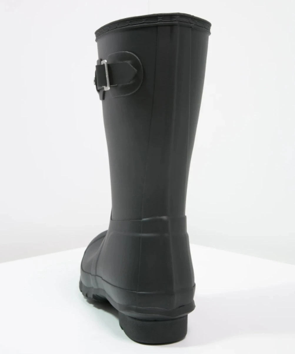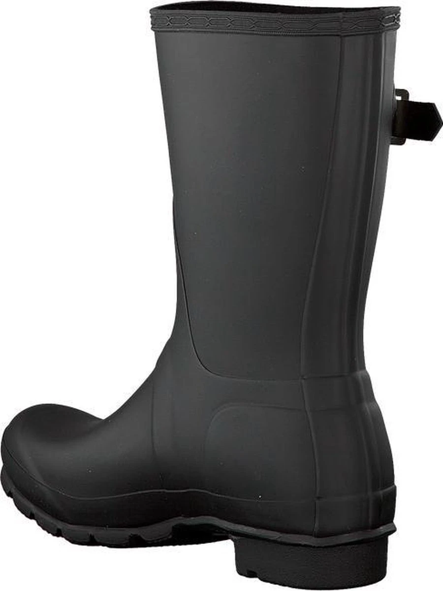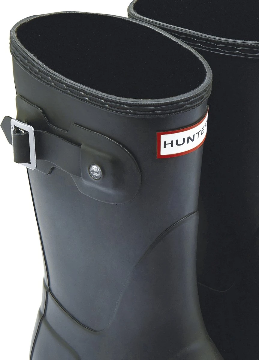 Van het Britse merk Hunter is deze Womens Original Short regenlaars. Een perfecte laars met een hoog comfort en een toffe look. Dit zwarte model is handgemaakt van natuurlijk gevulcaniseerd rubber en heeft een matte finish. Op de voorkant bevindt zich een merkopdruk en de schacht heeft een siergesp op de zijkant. De rubberen buitenzool heeft een gripvast profiel en de laars heeft een textiel binnenvoering met vast voetbed. Met dit exemplaar ben jij klaar voor alle weersinvloeden dit jaar!