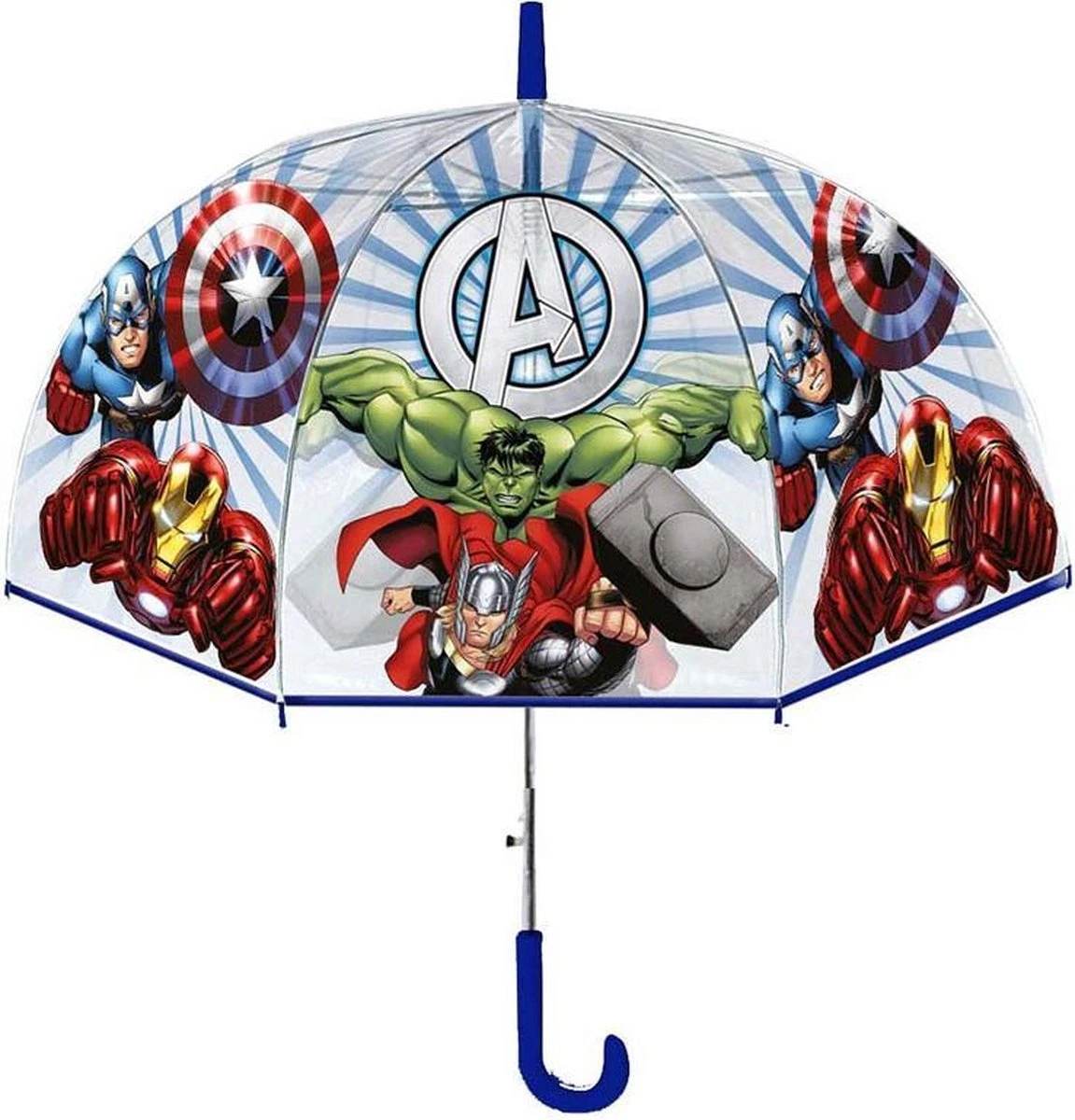 Laat de regen je er niet van weerhouden om op pad te gaan! Met deze leuke Avengers paraplu wandel jij vrolijk door de regen. Het gebogen handvat is niet alleen fijn om vast te houden, maar zorgt er ook voor dat je de paraplu gemakkelijk kunt ophangen.