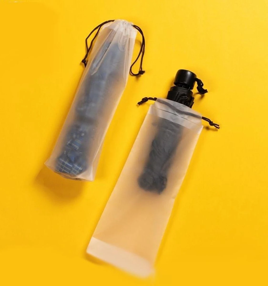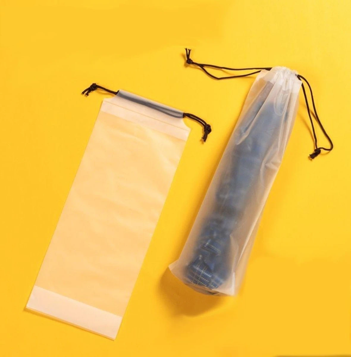 Pakket omvat:1X Draagbare Paraplu Trekkoord Opbergtas – Herbruikbaar en Doorschijnend.