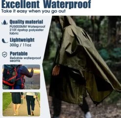 LOWLAND OUTDOOR® Wandelponcho - 100% Waterdicht (10.000mm) - Ademend (8.000g/M²) PFAS Vrij! Medium