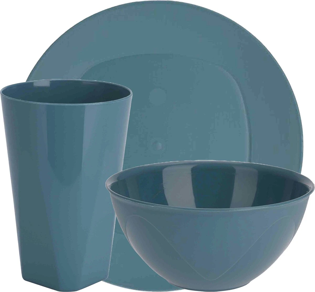 24-delige serviesset bestaand uit 8 bekers, 8 dessertschaaltjes en 8 ontbijtbordjes. Ideaal voor outdoor/camping/picknick/strand. Afmeting beker: ca. D8 x H12 cm. Inhoud: ca. 350 ml. Afmeting schaaltje: ca. D13 x H6,5 cm. Inhoud: ca. 400 ml. Afmeting bord: ca. D20 x H2 cm. Materiaal: polypropyleen. De serviesset is magnetronbestendig en vaatwasserbestendig.